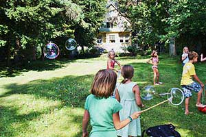 Willkommen in der über 100 Jahre alten Villa. Durch den riesigen Park mit altem Baumstand gelangt man direkt zum See